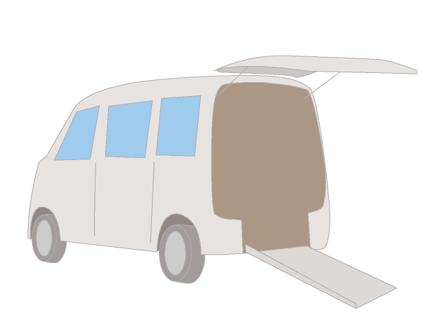 ● 車いすに乗ったまま乗り降りできます。同乗者2名様まで。